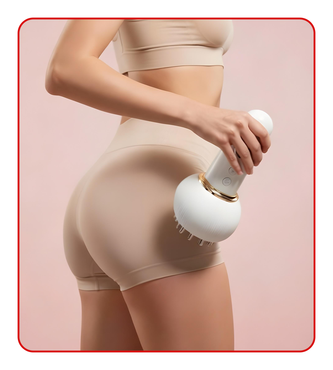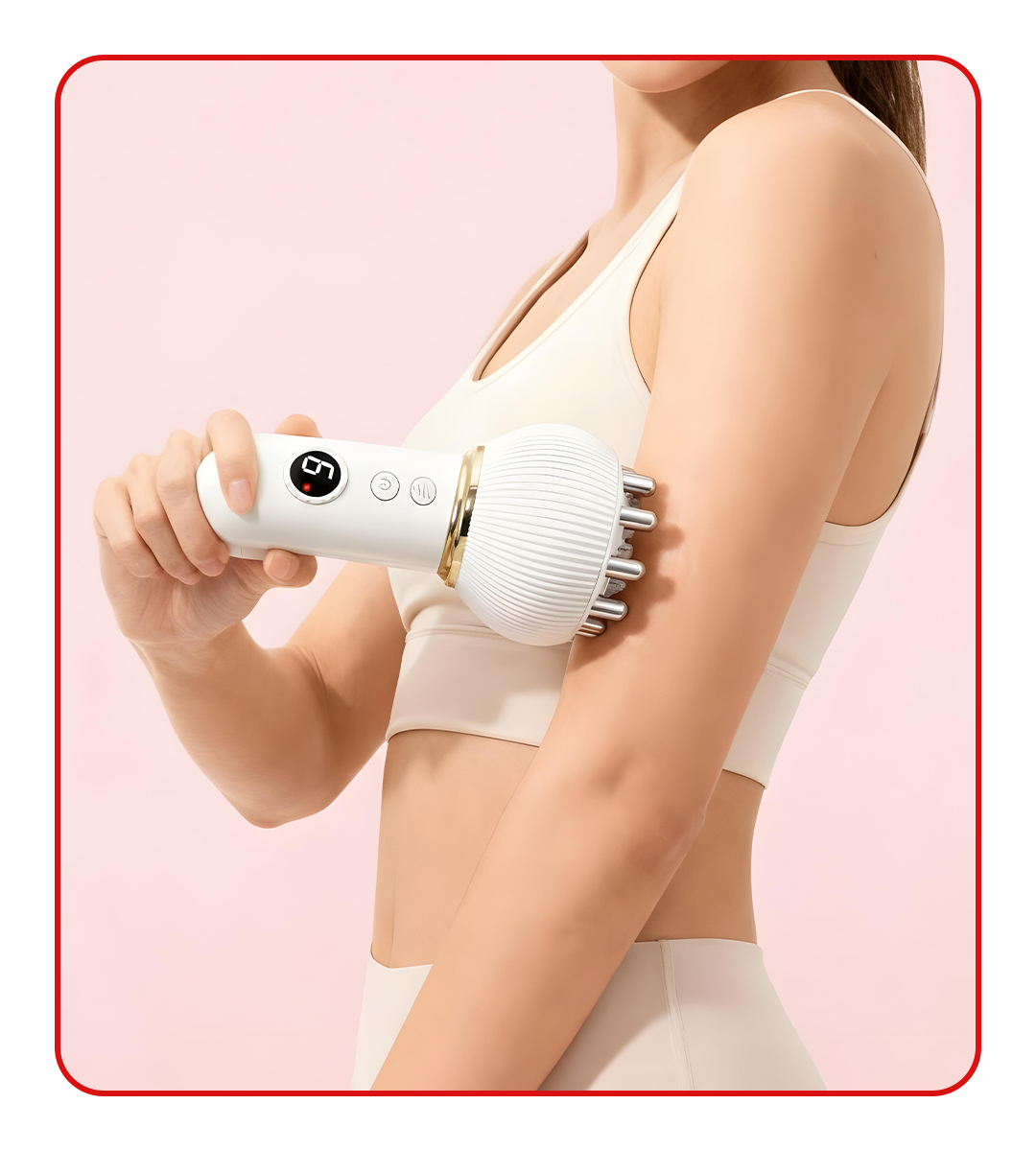 ThermoSculptor™ combines gentle heat, red light, and microcurrents to help smooth and contour your body. As you glide it across each area, it supports circulation and lymphatic drainage, encouraging a more toned, sculpted appearance over time.